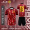 Các mảng họa tiết được phân bố ngẫu hứng trên toàn bộ thân áo, tạo hiệu ứng thị giác mạnh và giúp bộ trang phục trở nên độc đáo khi thi đấu.