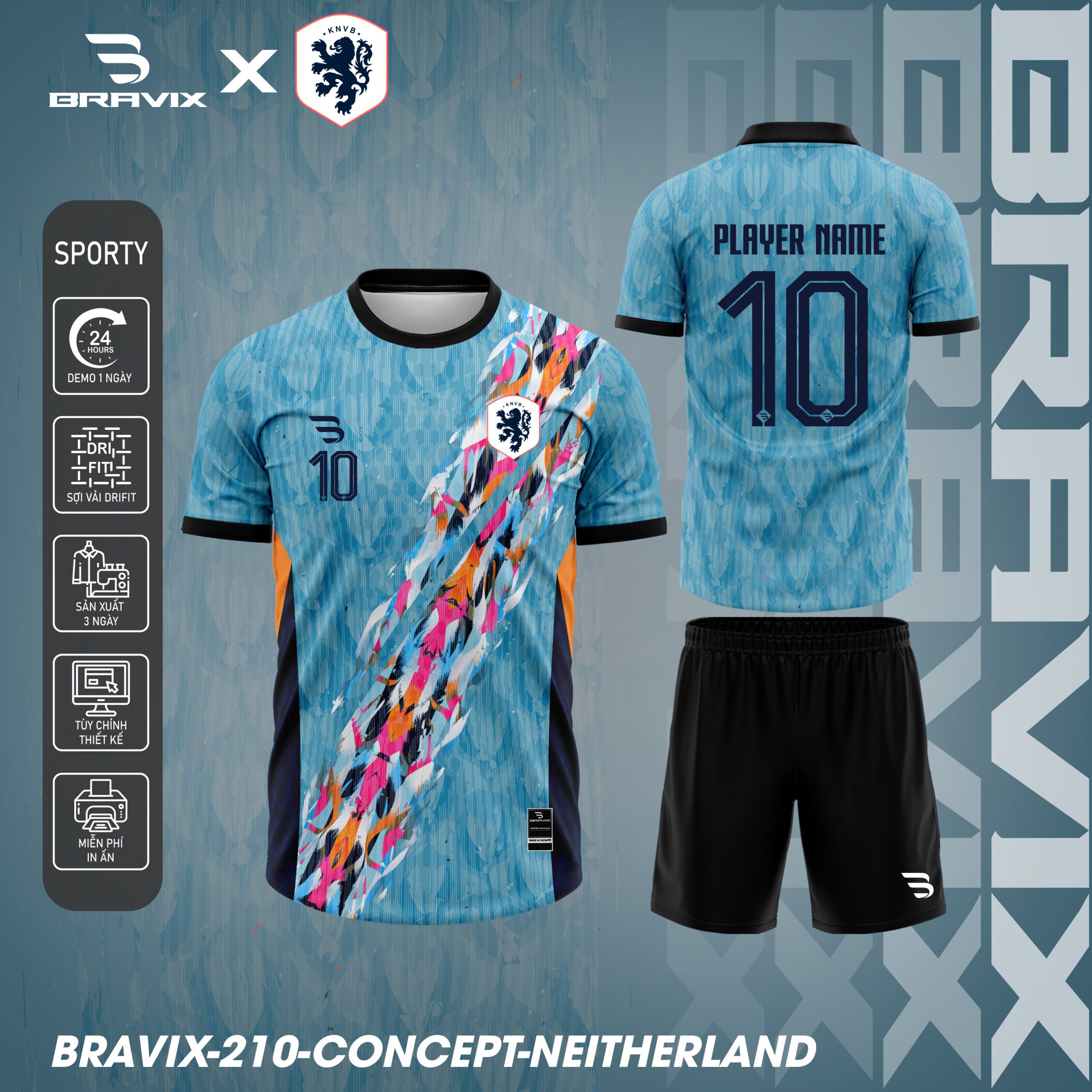 Aurora Stroke Edition là mẫu áo nằm trong bộ sưu tập Bravix Collab Concept, kết hợp tinh thần bóng đá sáng tạo của Hà Lan với phong cách nghệ thuật đương đại. Nền xanh đặc trưng được phối cùng mảng màu “stroke paint” đầy ngẫu hứng, tạo nên một thiết kế đậm chất nghệ sĩ – mạnh mẽ mà vẫn đầy tinh tế.