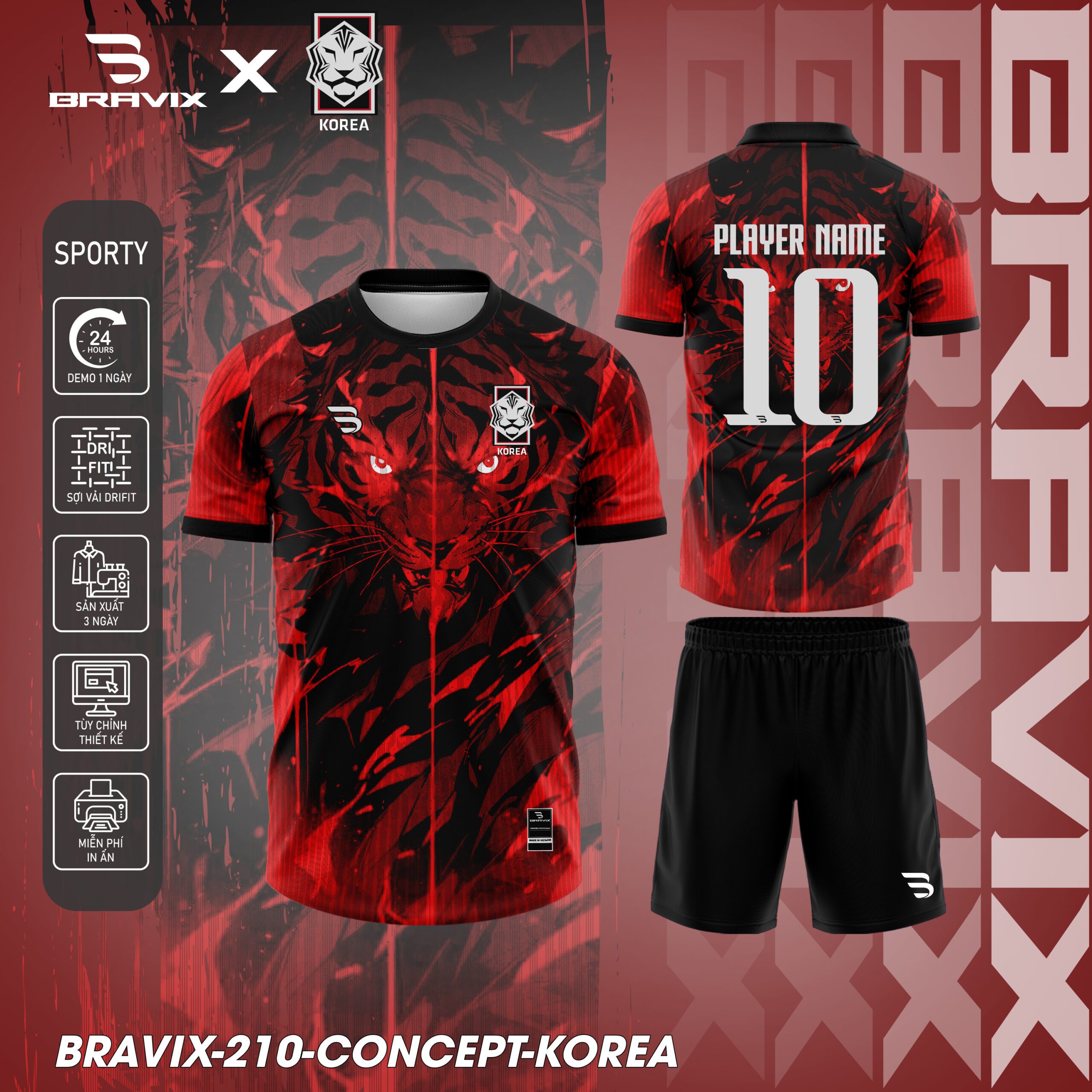 Toàn bộ mặt trước áo là hình ảnh đôi mắt hổ rực cháy, phối cùng các nét cắt và mảng màu đỏ–đen sắc bén, tạo hiệu ứng thị giác mạnh mẽ. Đây là mẫu áo dành cho các đội bóng thích chất ngầu – cá tính – khác biệt, mang tinh thần chiến đấu không lùi bước.