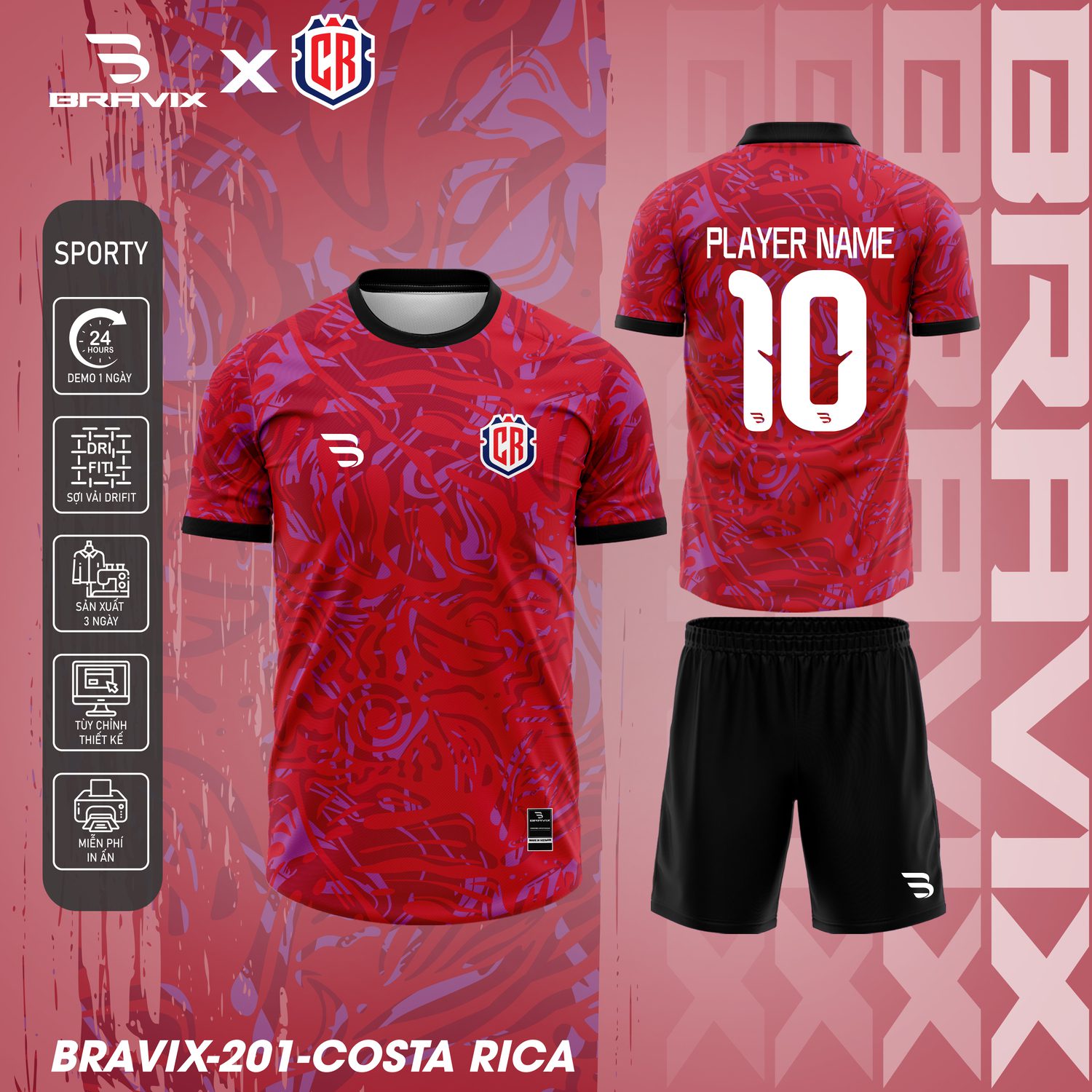 Mẫu “Costa Rica” của BRAVIX mang tinh thần mạnh mẽ, nhiệt huyết và giàu bản sắc của đội tuyển quốc gia Costa Rica – đại diện nổi bật của bóng đá Trung Mỹ.