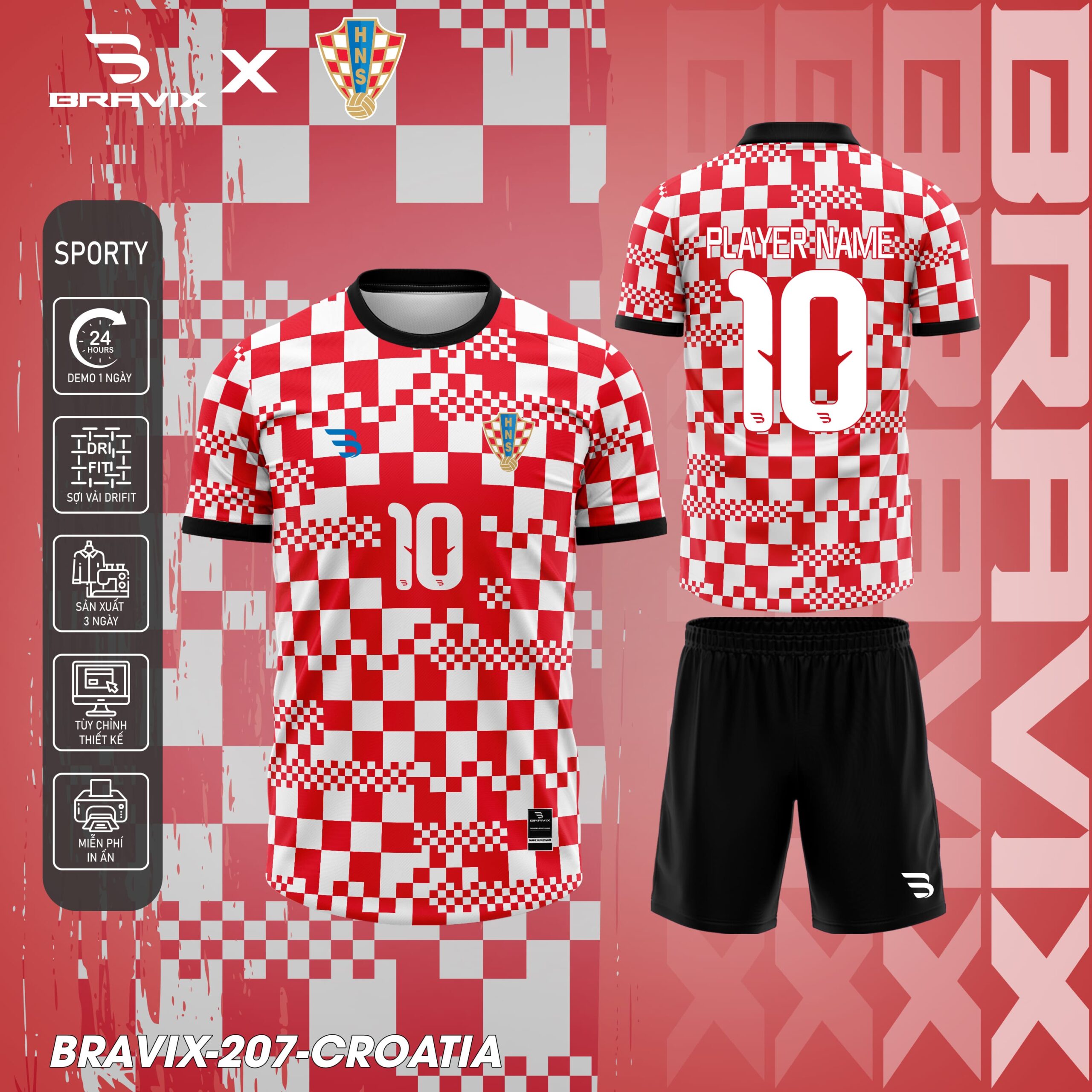 • Thiết kế đậm bản sắc Croatia – caro nhận diện cao, thể thao, mạnh mẽ.