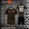 Mẫu áo mang tinh thần của màu cờ sắc áo Việt Nam nhưng được nâng cấp theo phong cách graphic hiện đại, phù hợp với đội bóng phong trào, giải đấu nội bộ và fan tuyển Việt Nam muốn làm mới hình ảnh đội mình.