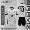 Những sọc đỏ nổi bật trên nền trắng giúp chiếc áo dễ nhận diện và mang đậm tinh thần bóng đá Nam Mỹ. Các chi tiết phối xanh dương ở tay áo và số áo tạo điểm nhấn hiện đại, giúp tổng thể thiết kế cân bằng và nổi bật hơn. Cổ áo và bo tay màu đen mang lại sự gọn gàng và thể thao, trong khi quần đen đi kèm giúp bộ kit trở nên mạnh mẽ và dễ phối.