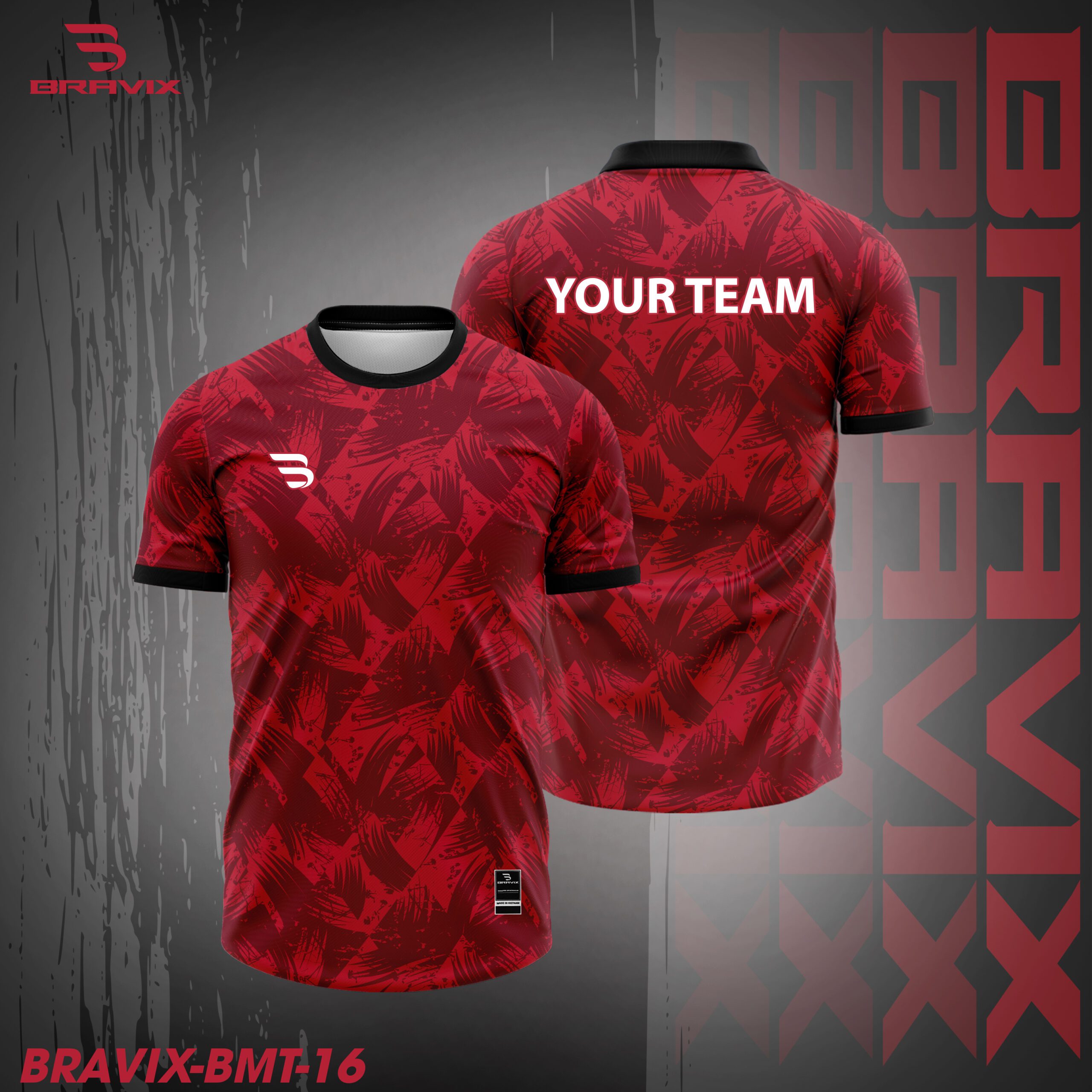 Áo Cầu Lông BRAVIX BMT-16 | Thiết Kế Đỏ Pattern Abstract Mạnh Mẽ