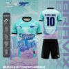 Phần thân áo được phủ bởi các họa tiết typography lấy cảm hứng từ biểu tượng và lịch sử của Arsenal. Những dòng chữ và họa tiết đồ họa được sắp xếp xen kẽ tạo nên chiều sâu cho thiết kế, giúp chiếc áo mang phong cách hiện đại nhưng vẫn giữ được tinh thần của đội bóng.
