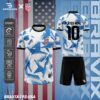 - Logo ngực vàng đồng nổi bật, tôn khí chất đội tuyển quốc gia.