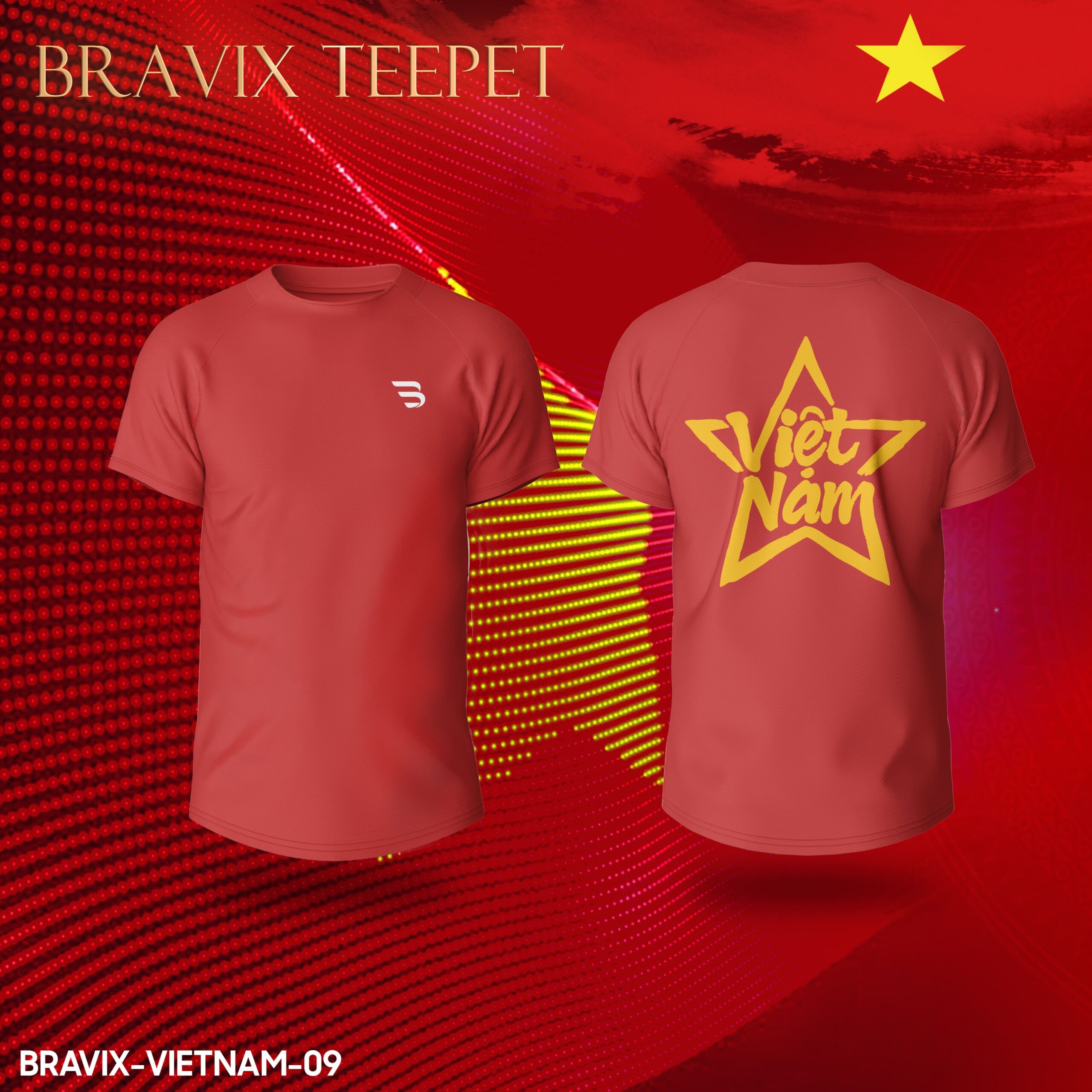 - Logo Bravix trước ngực tinh gọn và biểu tượng ngôi sao Việt Nam sắc nét.