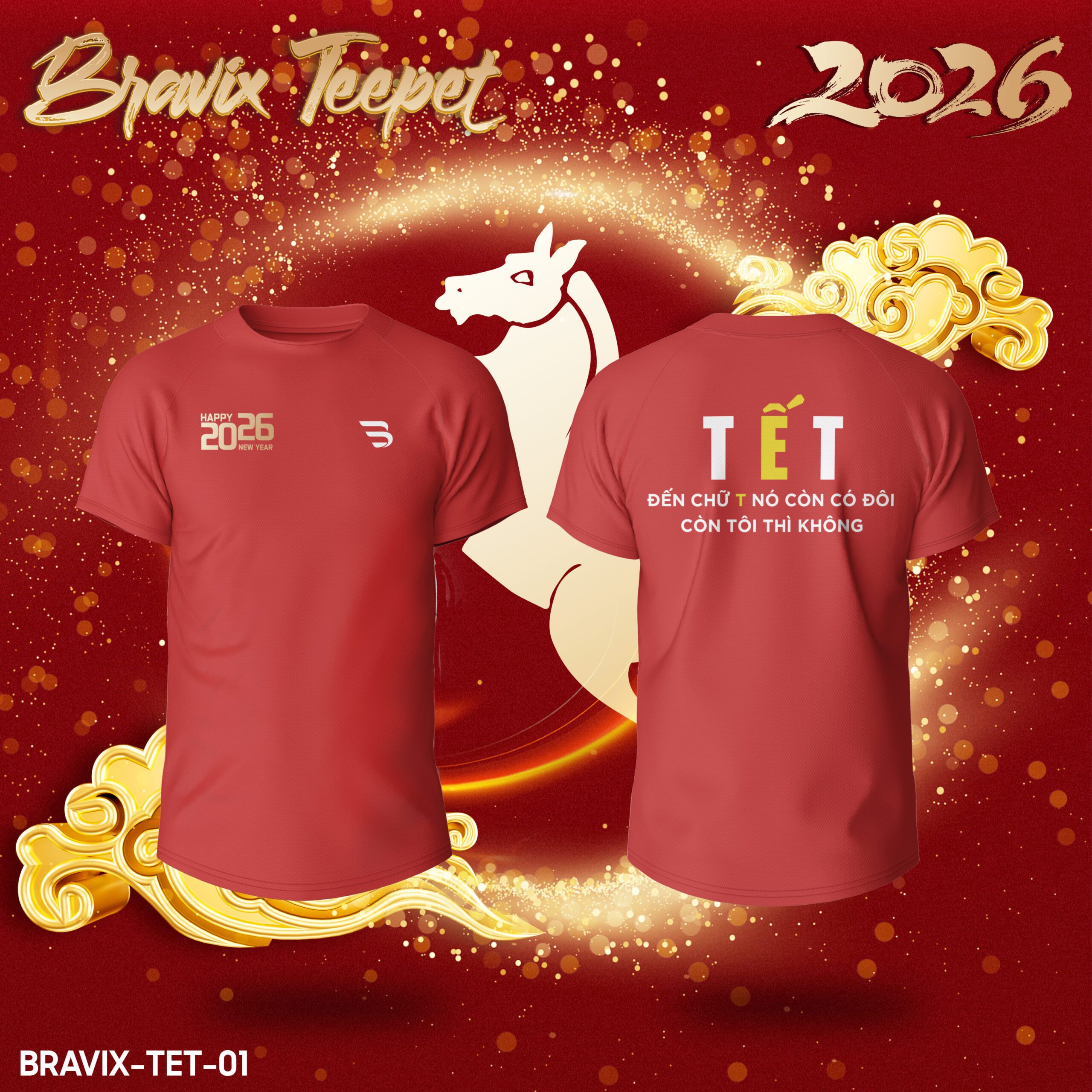Áo Thun Tết BRAVIX 2026 – Mẫu "Tết Đến Chữ T Nó Còn Có Đôi"
