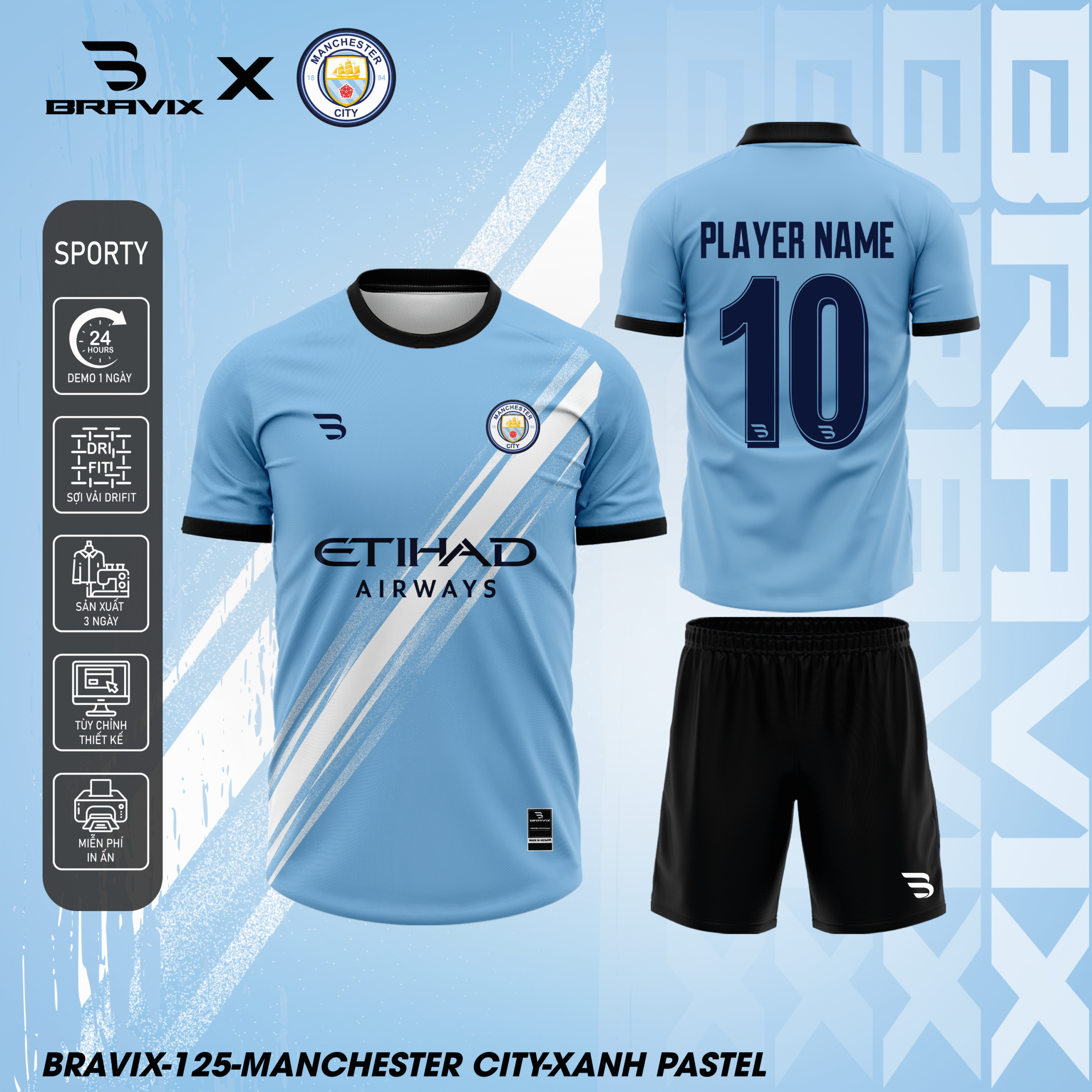 Tỏa sáng với tinh thần vô địch của “The Citizens” Manchester City với bộ quần áo bóng đá thiết kế BRAVIX – nơi hội tụ phong cách Ngoại Hạng Anh đẳng cấp và công nghệ vải hiện đại.