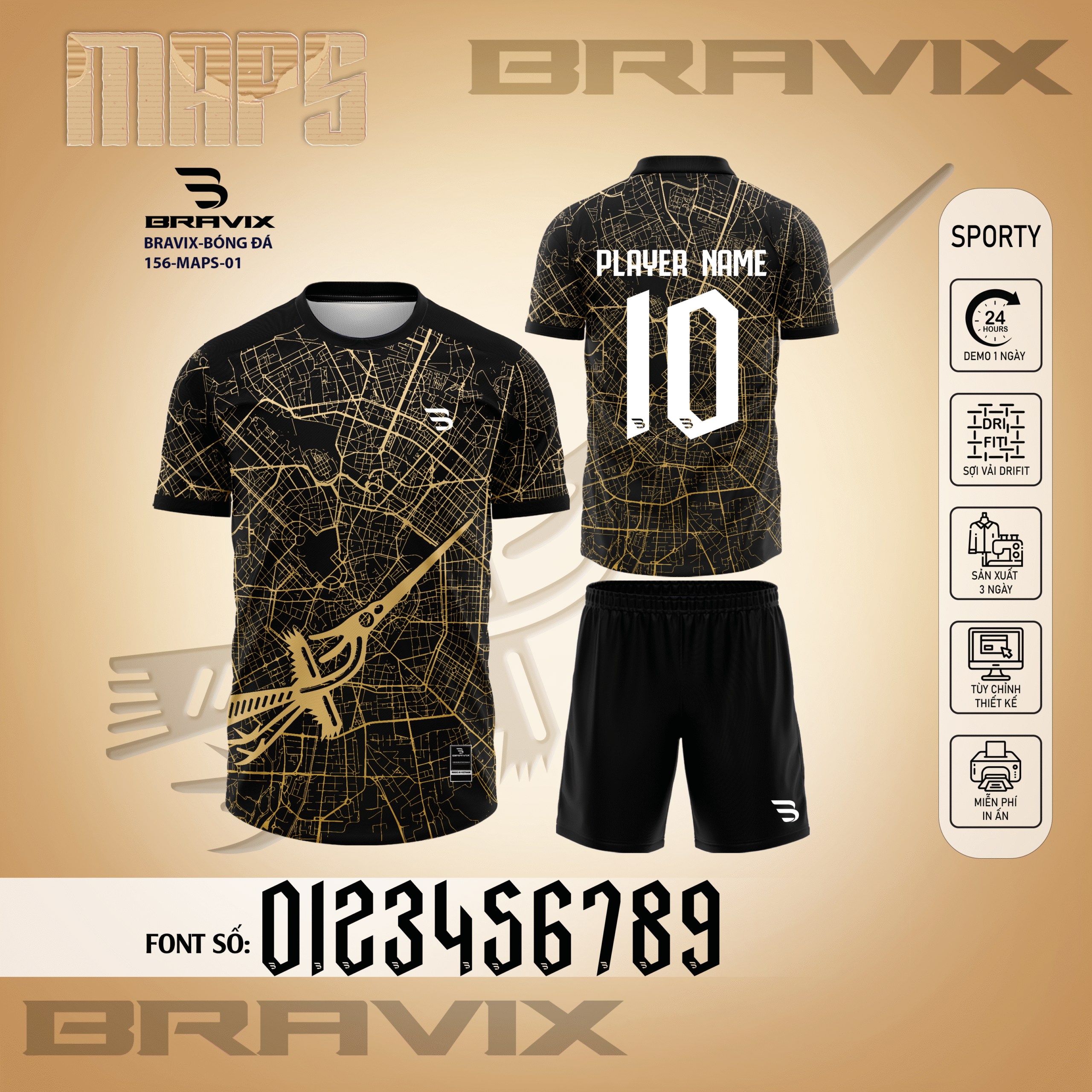 BST Maps của Bravix là dòng sản phẩm áo bóng đá thiết kế cao cấp lấy cảm hứng từ bản đồ thành phố – biểu tượng của chiến thuật, định hướng và khả năng dẫn đường đến chiến thắng. Với họa tiết bản đồ đường phố (street map) chi tiết, địa danh thành phố, và bảng màu đen vàng (black-gold) sang trọng, BST Maps mang đến phong cách hiện đại, thông minh và đầy chiến lược cho các chiến binh trên sân cỏ.