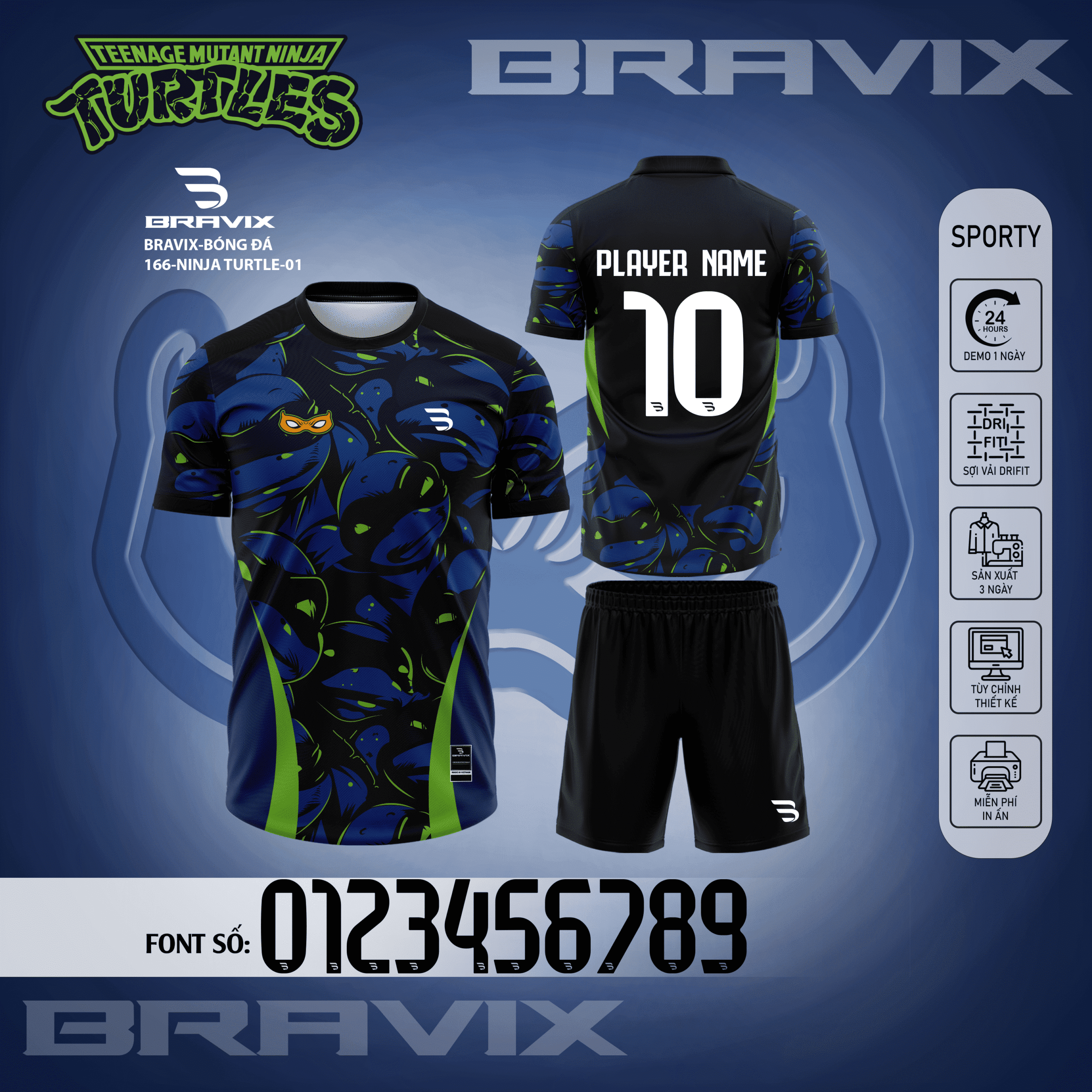 Bộ Quần Áo Bóng Đá Thiết Kế BRAVIX – BST NINJA TURTLE