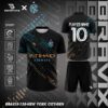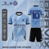 • 2 phiên bản màu sắc: Đen với họa tiết skyline (phiên bản sân khách hiện đại), Pastel xanh với sọc nhẹ (phiên bản sân nhà truyền thống) – đáp ứng mọi phong cách.