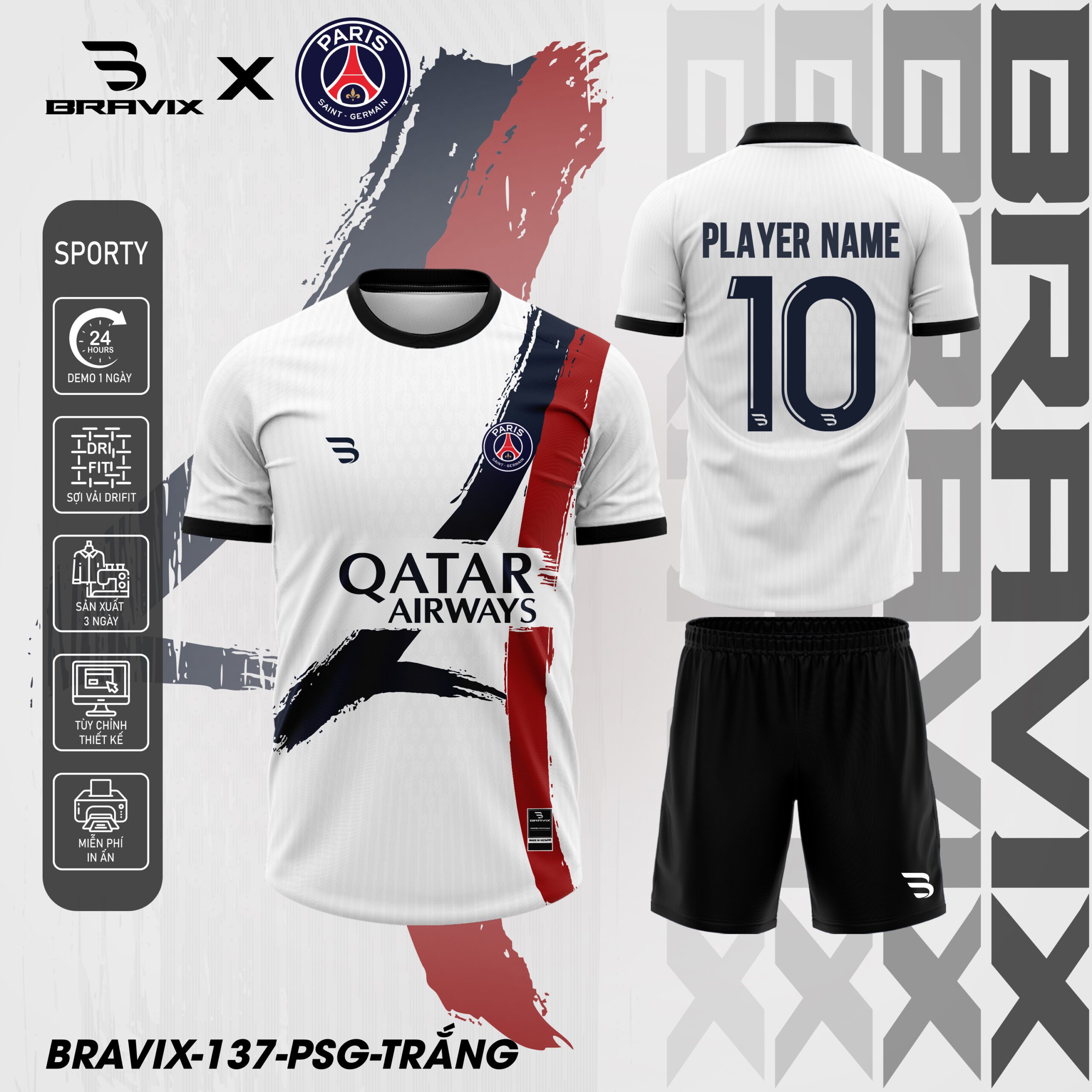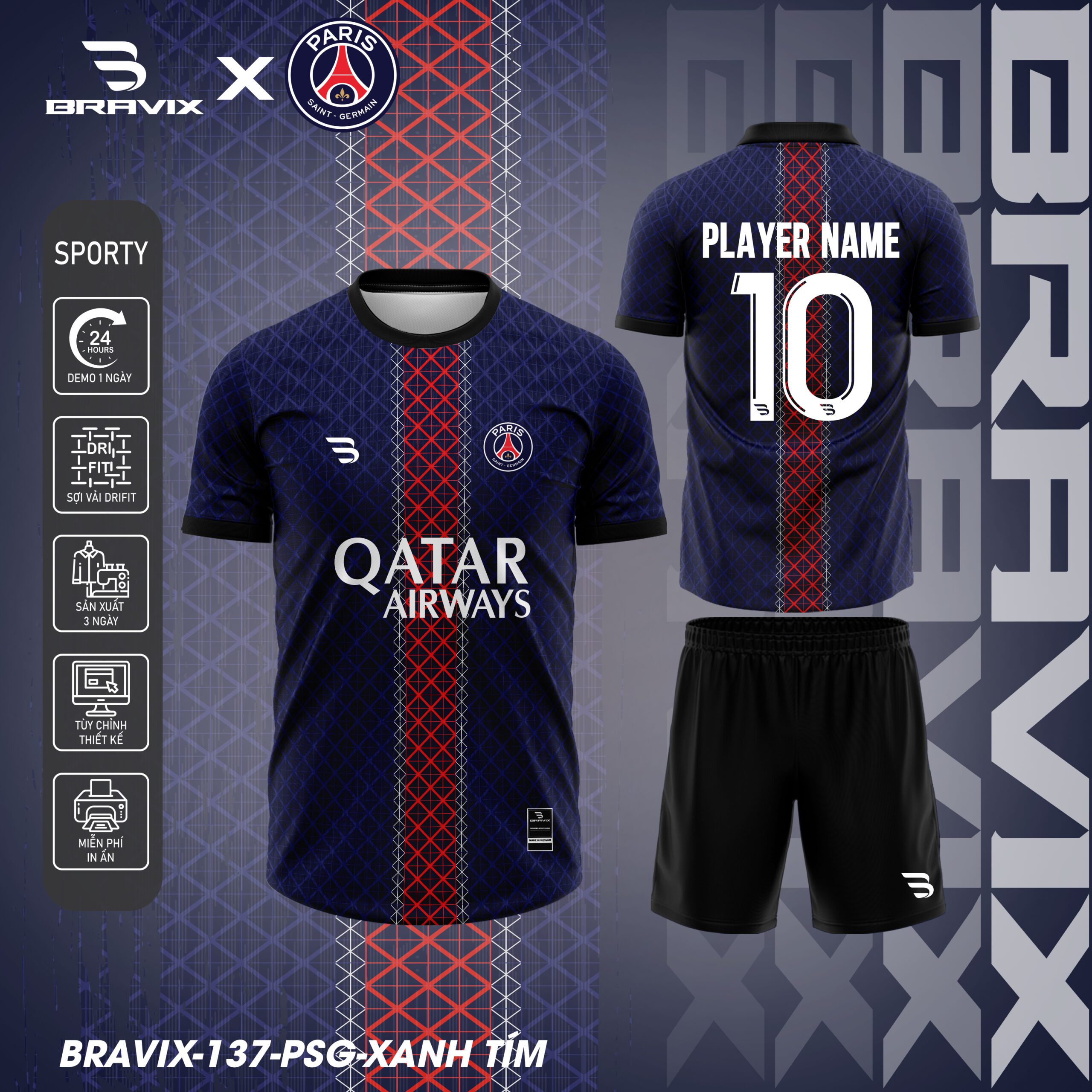Bộ Quần Áo Bóng Đá Thiết Kế BRAVIX – Mẫu PSG