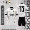 - ⚪ Phiên bản TRẮNG (Home Kit): Trắng tinh khiết với viền vàng hoàng gia – áo đấu sân nhà huyền thoại Los Blancos, biểu tượng của sự thuần khiết và chiến thắng