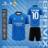 - Thiết kế lấy cảm hứng từ Real Madrid với logo Real Madrid trên ngực, chữ “Emirates Fly Better” ở giữa áo (nhà tài trợ hàng không), viền vàng hoàng gia (phiên bản trắng), họa tiết sọc chéo tinh tế, in chuyển nhiệt sắc nét.