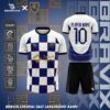 - ⚪🔵 Phiên bản TRẮNG XANH (Away Kit): Trắng với họa tiết checkerboard xanh cobalt và viền đỏ – áo đấu sân khách hiện đại, sạch sẽ và đầy cá tính